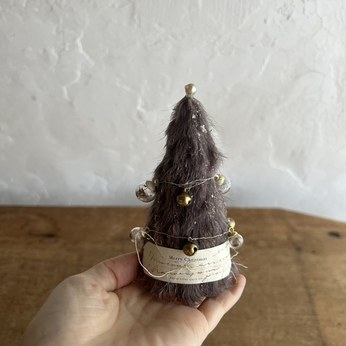 errer christmas tree 25 ver.です。 カラーはチャコールグレー、 とても落ち着いた印象です。 今年は鈴やガラスドーム をつけています。 動かすと鈴の小さい音がなってとてもかわいいです。