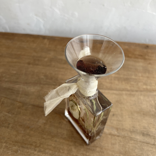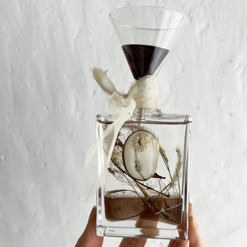 5359 oil herbarium 香水瓶*funnel size:約W5.5cm*H13.5cmロートΦ5cmprice:\8,800- tax inガラスの香水瓶にガラスの漏斗をつけたオイルハーバリウムです。(開きません)ブラウンの部分は樹脂で固めていて、下の香水瓶の中はオイルです。とてもきれいでいい雰囲気です。*オイルは空輸ができませんので陸上運送でのお届けとなります。北海道沖縄等のお客様はご留意くださいませ。*直射日光の当たる場所、高温多湿の場所、火気の近くには置かないでください。*オイルは触れても問題ありませんが、お子様やペットの手に触れないところへおいてください。配送方法:宅配便のみの対応です。<宅配便>size60:保証あり、日時指定可、土日祝発送可・ご購入前に特定商取引法を必ずお読みください。・領収書が必要な方はカートの備考欄に 領収書 と入力くださいませ。 ・梱包にはリサイクルの箱を使用させていただくことがございます。 ・撮影小物は商品に含まれません。 ・こちらは実際の植物を使用しております。経年の変化等予めご了承くださいませ。 ・実際の商品の色と画像の色とは、それぞれのモニターの特性により異なる場合がございます。 ・商品に関するご質問などは、ご注文の前にメールにてお問い合わせください・errerの作品は自然の本物の植物を使用して製作しています。 ご購入の際はあらかじめ自然物に対するご理解をいただけますと幸いです。